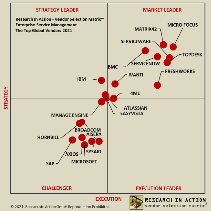 Research In Action: Vendor Selection Matrix™IT and Enterprise Service Management SaaS and Software - March 2021